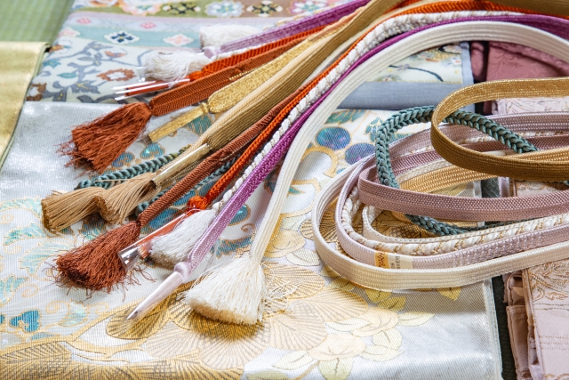 成人式で着用する振袖姿をより華やかに演出するために欠かせない小物の一つが「帯締め」です。帯締めは帯の真ん中に取り付ける飾り紐で、装飾的な役割を果たすと同時に、帯が緩んで着崩れするのを防ぐという実用的な役割も担っています。特に成人式のようなフォーマルな場では、美しく整った着姿を保つためにも帯締めの存在は非常に重要です。