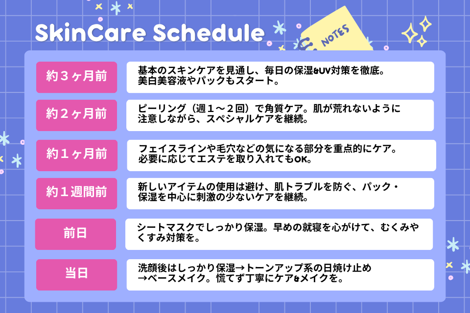 成人式は一生に一度の晴れ舞台。振袖やヘアセットはもちろん、写真にも残る特別な日だからこそ、肌のコンディションを整えて自信を持って当日を迎えたいですよね。美しい肌を手に入れるためには、成人式の数ヶ月前からスキンケアを計画的に始めることが理想です。