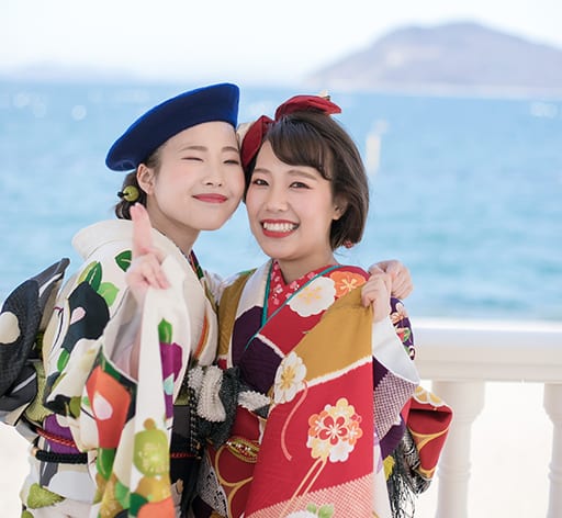 高松駅から車で3分。目の前には瀬戸内海が広がるスタイリッシュ・モダンな結婚式場。潮風をすぐそばに感じられる非日常のリゾートガーデンで、ハタチの記念にふさわしい特別なシーンを、1カット1カット大切に撮影させて頂きます。 会場内には、本格フレンチを気軽に楽しんでいただける”レストラン シェリ”を併設。オーシャンビューを眺めながら、瀬戸内の食材や季節の旬な食材を盛り込んだコースで、ハタチのお祝いもおすすめです。